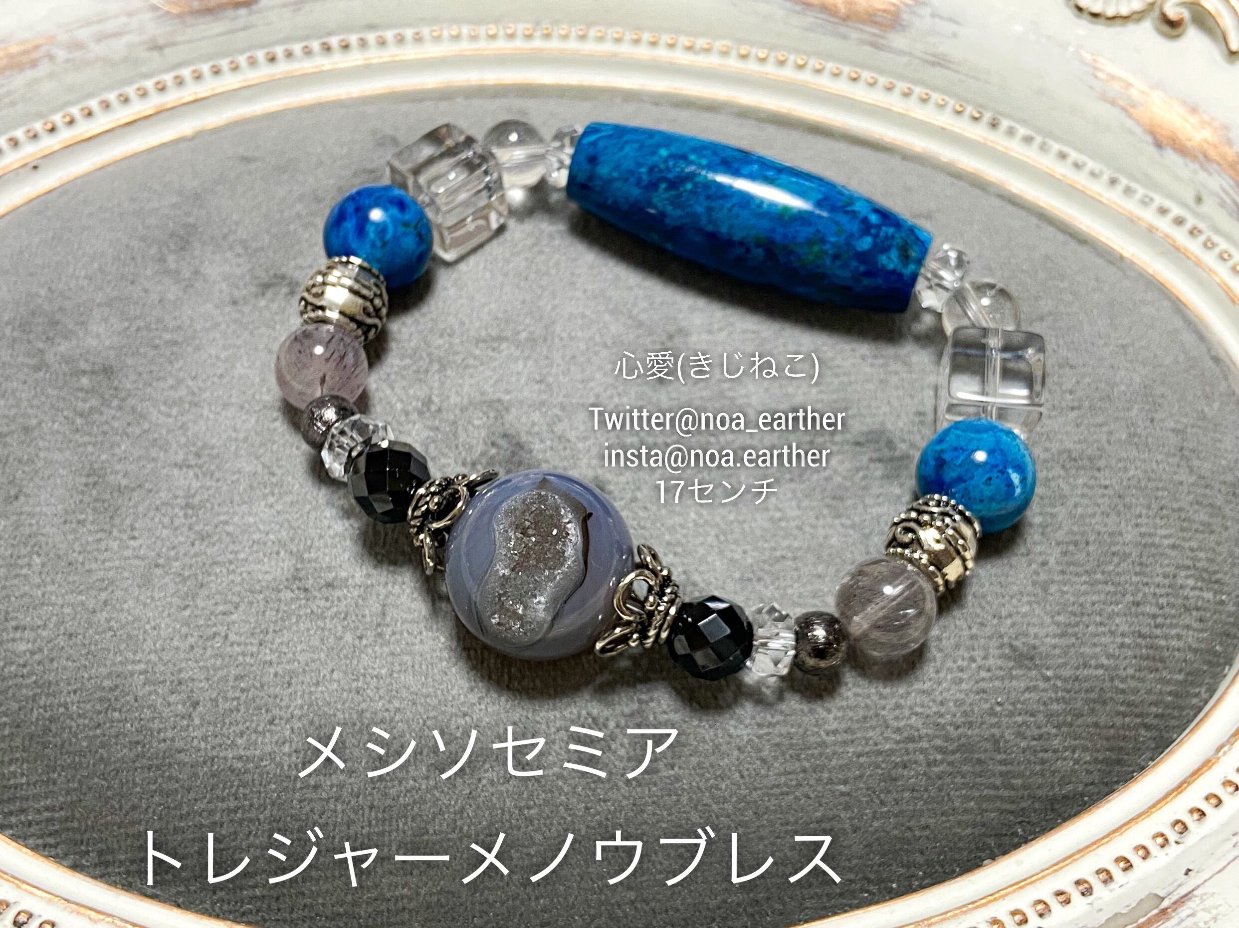 通常は大きな原石タイプが主流ですが、貴重なラウンドタイプを使いメシソセミアブレスを作りました。